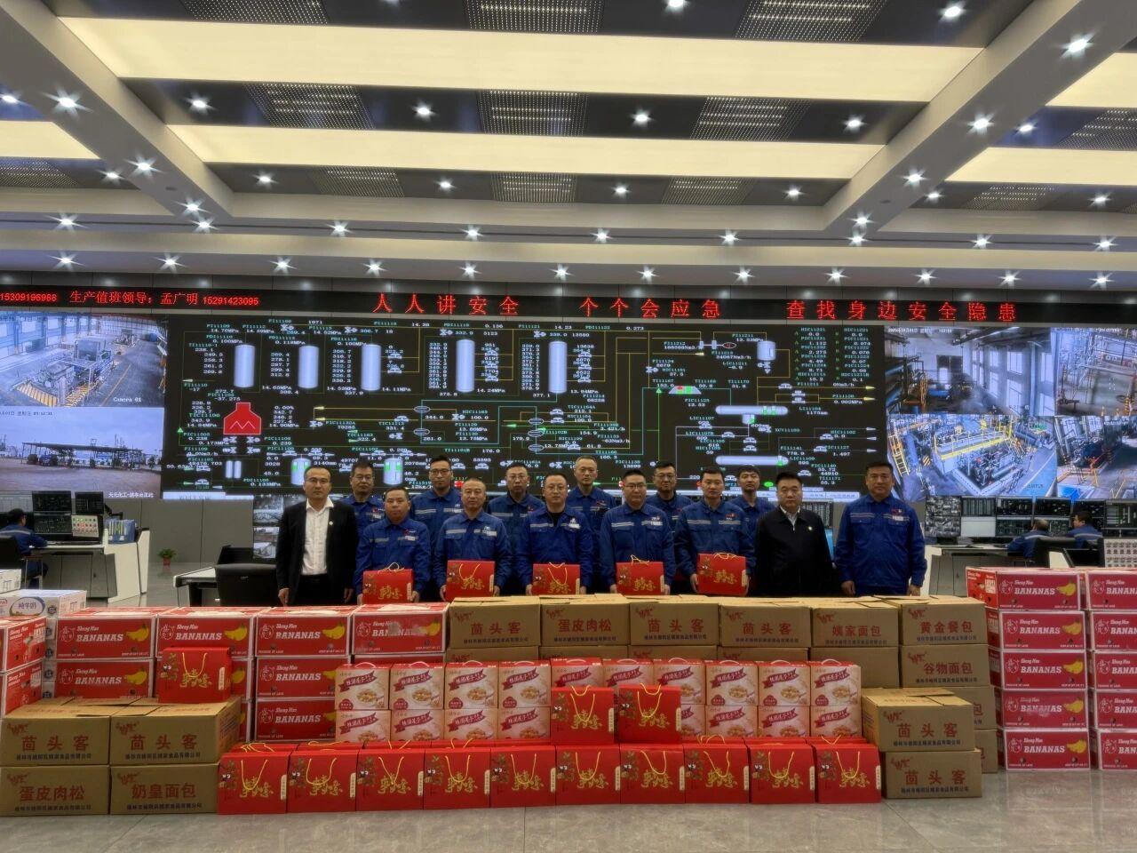 10月6日,天元公司董事、總經理喬柏,黨委委員、副總經理趙耀飛檢查節(jié)日期間安全生產工作并慰問節(jié)日期間堅守崗位的干部職工,為他們送去慰問品。喬柏一行先后前往各生產裝置區(qū)、中心控制室以及職工餐廳,查看節(jié)日期